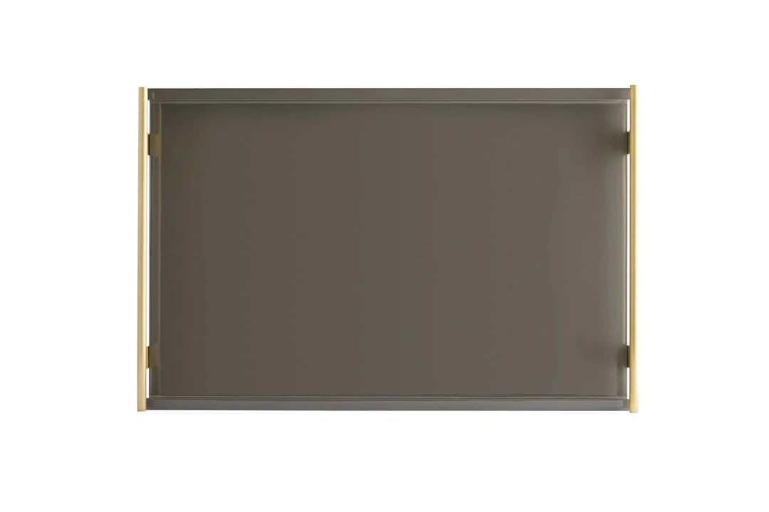 Form meets function to create the Archer Tray from Arteriors Home. A chateau gray lacquer finish is balanced by antique brass handles that offer a practical and polished appeal. The Archer offers an optimal serving piece when hosting casual or formal functions.