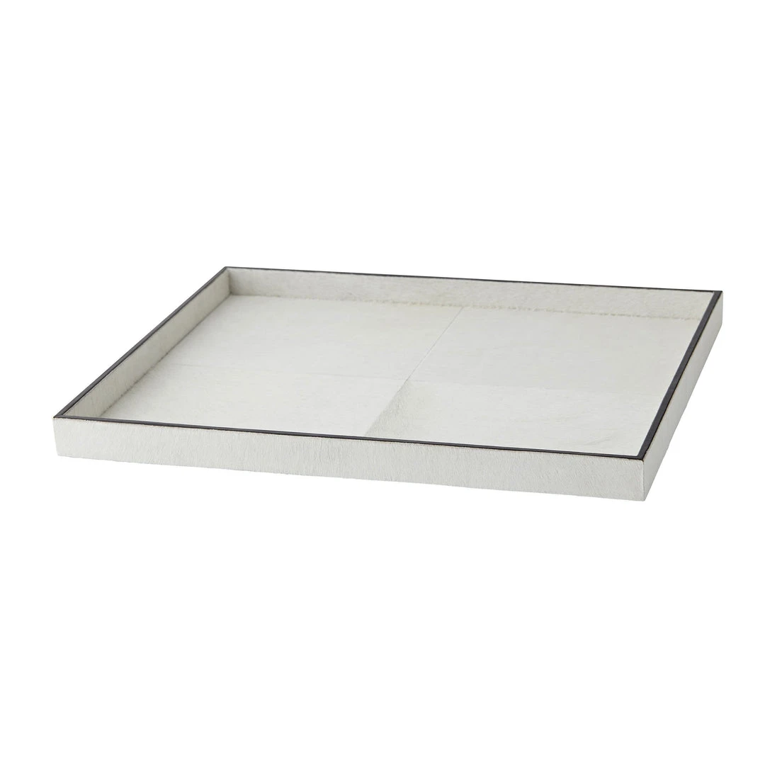 Elevate any surface with the Caspian Tray from Arteriors Home. Rustic yet refined, each tray features white hide and black leather edging that traces its frame, offering a high contrast look. The versatile scale allows this piece to double as a platform for showcasing collectibles. *Hide may vary.