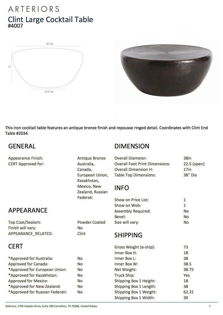 Be the first to review “Arteriors Home Clint Large Cocktail Table Antique Bronze” Cancel reply