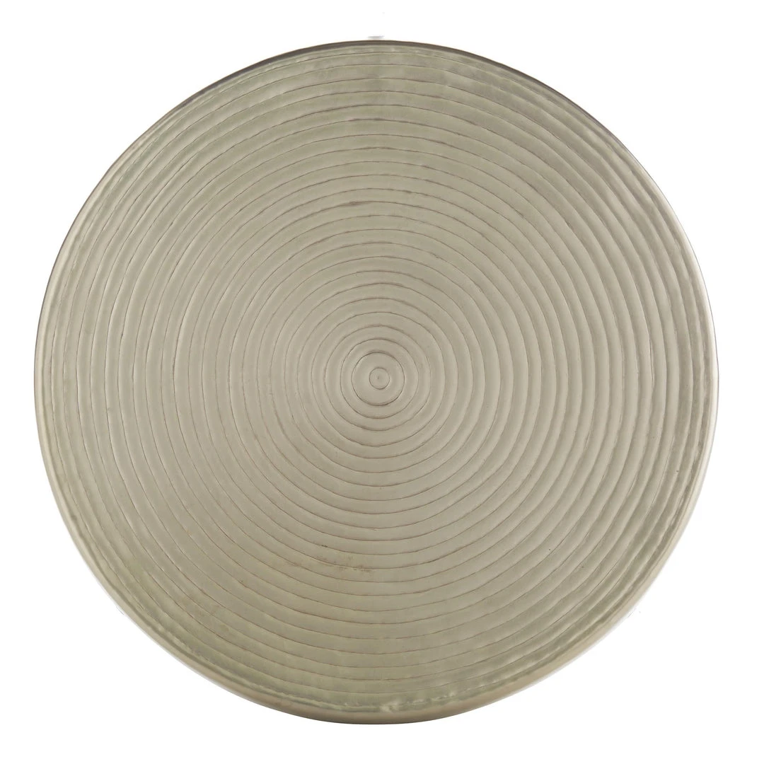 The Clint Large Cocktail Table from Arteriors Home is offered in an iron material with a vintage nickel finish. The ring detail on the top brings a unique feature to this design. Tables such as the Clint Large Cocktail Table are the perfect choice for living rooms and dining rooms. Finish may vary.