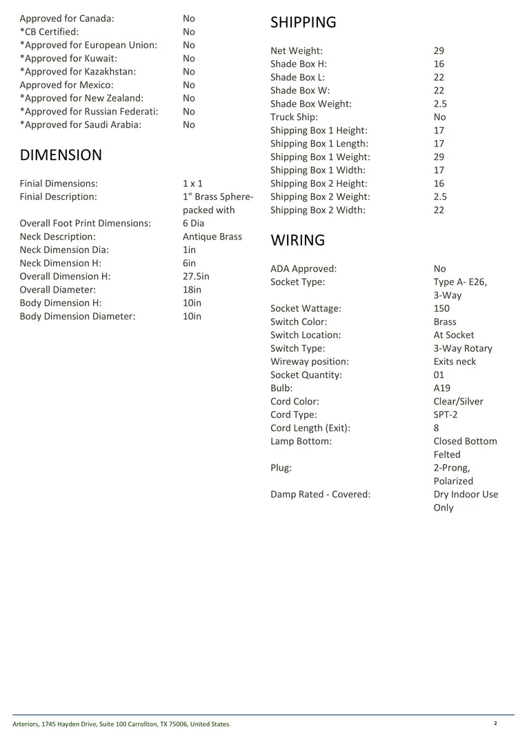 | Materials | Ricestone; Steel; Antique Brass; Socket Wattage:150; Switch Color: Brass; Switch Type:3-Way Rotary; Socket Quantity:01; Bulb: A19; Cord Type: SPT-2; Cord Length (Exit):8 |