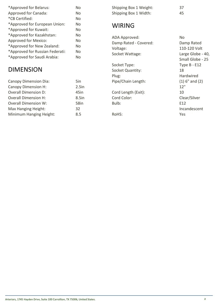 | Materials | Polished Nickel; Glass; Large Globe 40; Small Globe 25; Cord Length 10 |