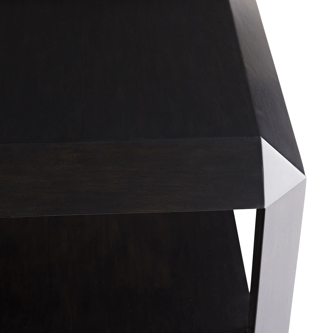 A contemporary design constructed with natural materials, the Dani End Table from Arteriors Home finds balance in style and function. Walnut in an ebony finish is crafted in an angular fashion, inspired by the many facets of emerald cut stones. The open form plays on the symmetry of its geometric arrangement, creating a striking visual aesthetic that is sure to catch one’s eye. This three-shelf structure is the perfect platform for curated collections of objets d’art.