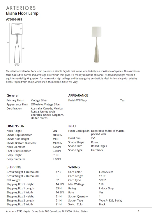 Be the first to review “Arteriors Home Eliana Floor Lamp New Arrivals” Cancel reply