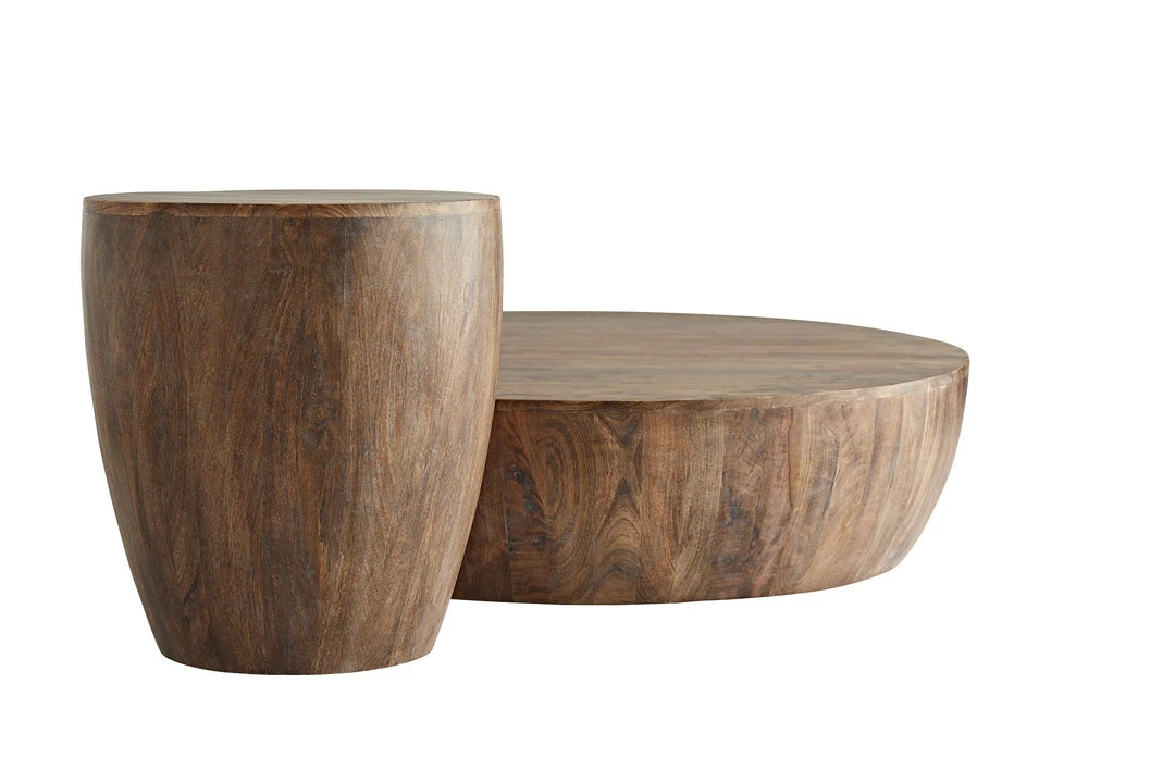 The Jacob Side Table from Arteriors Home meets the expectations of its arboreal companions on a smaller scale. Narrow wood slats wrap upwards from the sides of this planked drum-style table. The natural grain of the solid wood top is highlighted by the washed tobacco finish. A ravishingly rustic complement to a variety of decor styles. *Finish may vary.