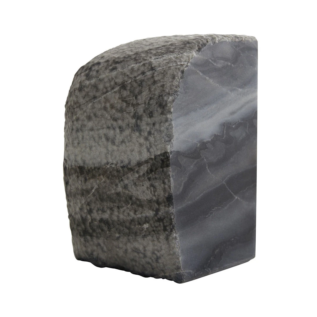 Prized literary collections deserve to be displayed proudly with the Judd Bookends Set of 2 in Galaxy Marble from Arteriors Home. These bold, stately bookends are hand-hewn from thick galaxy marble. Each features contrasting textures – The inner polished sides that beautifully show off the natural layers, and the grittier textured outer layers. As these pieces are all-natural, each one will vary in texture and color. Marble will vary.
