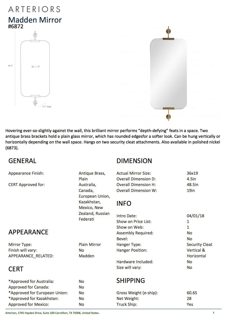 Be the first to review “Arteriors Home Madden Mirror Antique Brass New Arrivals” Cancel reply