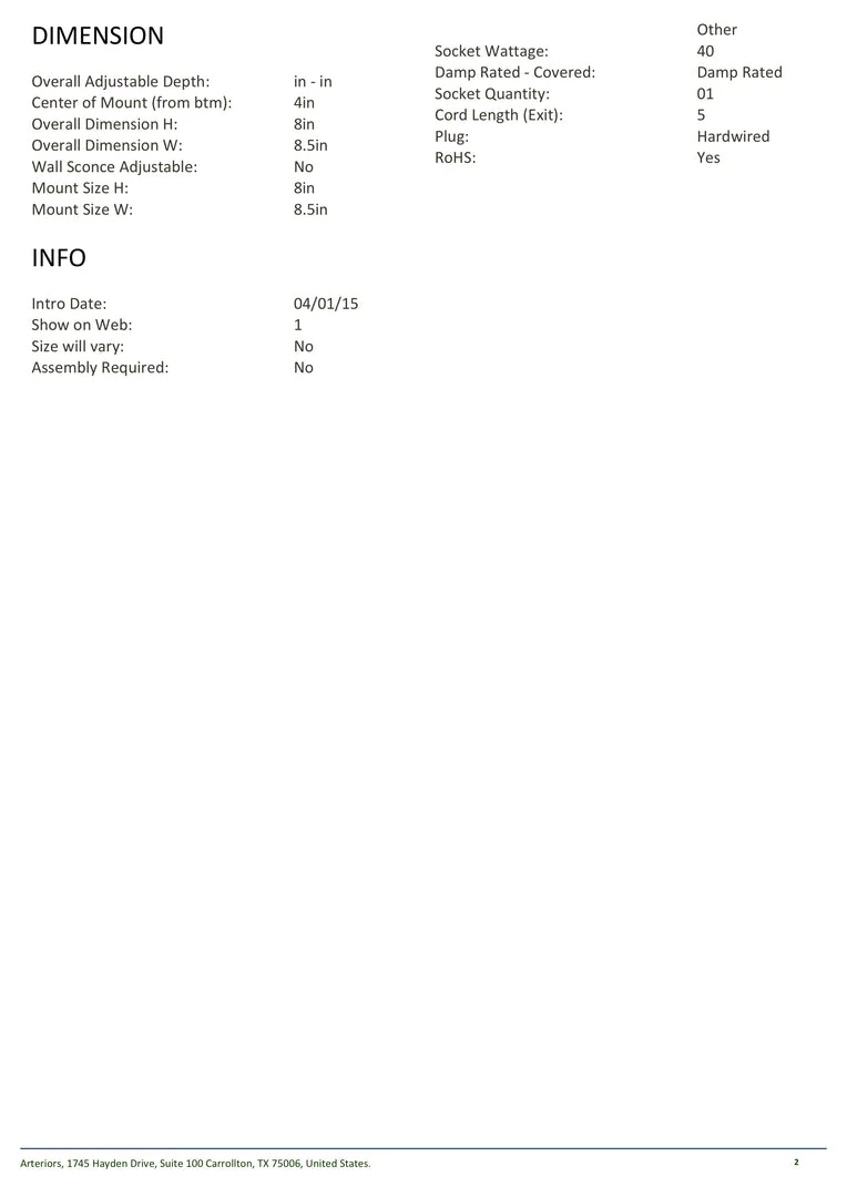 | Materials | Steel; Polished Brass; Requires One 40watt Bulb |