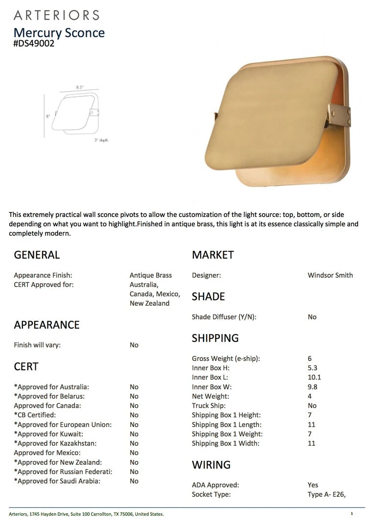 Be the first to review “Arteriors Home Mercury Wall Sconce Polished Brass New Arrivals” Cancel reply