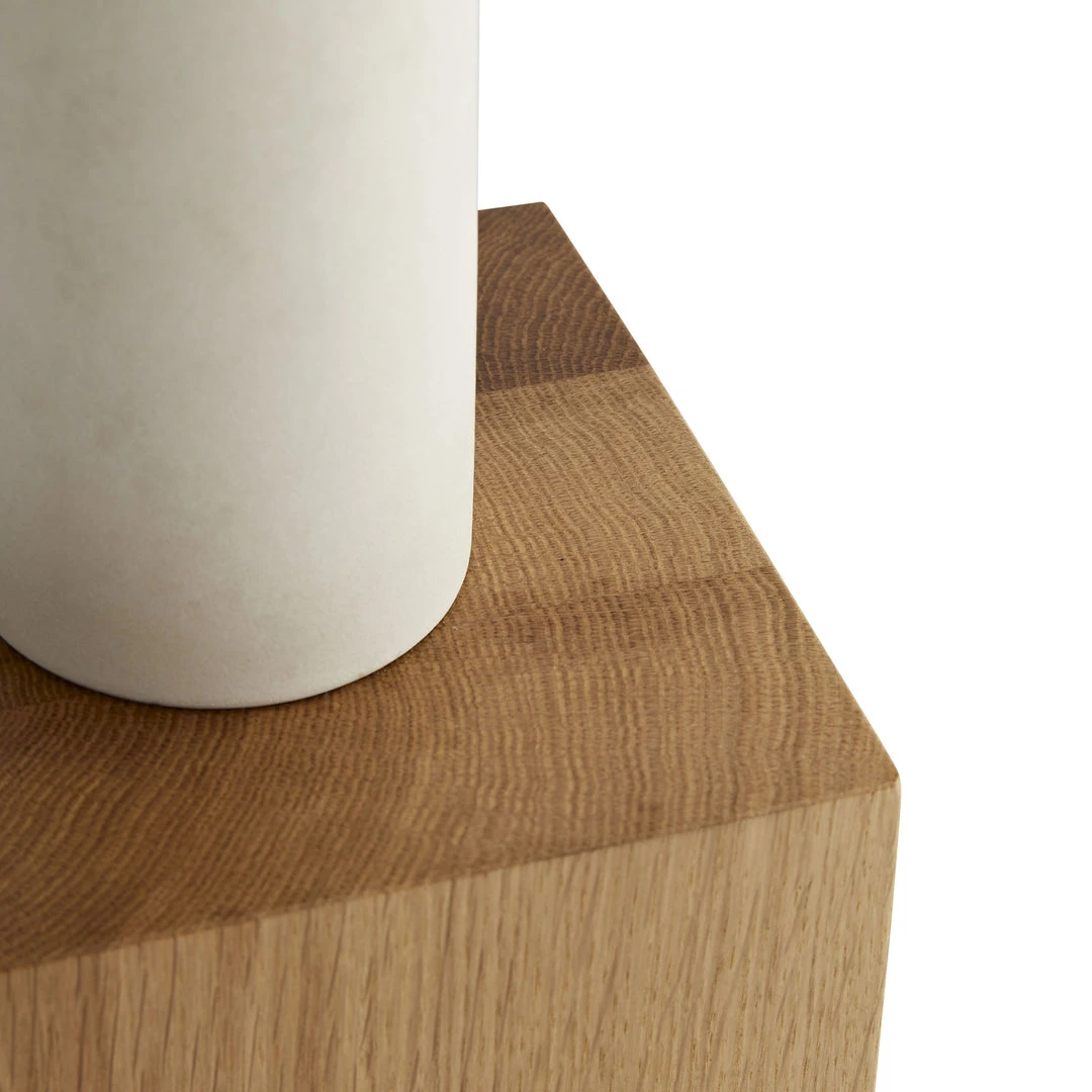 Designed by Ray Booth for Arteriors Home, the Mod Short Vase is inspired by the French sculptor Brancusi. The three ceramic forms play with mixed materials, juxtaposing matte ceramic against oak plinths. Each piece in the collection is sold separately so that you can use one as an accent or style all three together on dining or center tables. The best part? Each piece is interesting enough with or without flowers. *Mod short and large vases also available in this collection