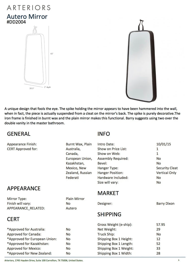Be the first to review “Arteriors Home New Arrivals Autero Mirror Rectangle” Cancel reply