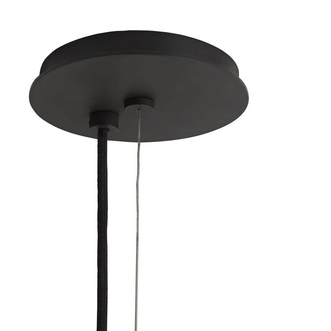 An ultra-versatile pendant that offers dynamic contrast through modern and seemingly handcrafted materials, light and dark hues, and thoughtful detailing. The Glaze Pendant from Arteriors Home and Workshop/ APD features a stained ivory crackled ceramic bowl shade suspended from a knurled metal pin and woven black fabric cord. The pendant’s opal frosted glass provides a soft, flattering glow that is reflected and diffused by the shade’s glossy finish. Hang as a single fixture, in groupings of two or more, or pair with the Glaze linear pendant for custom installations.