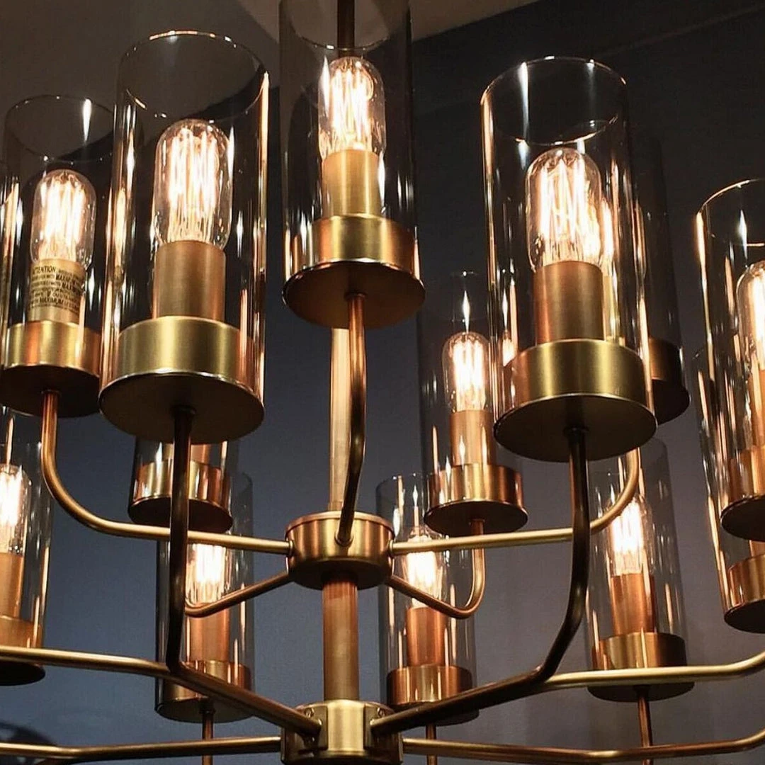 | Materials | Antique Brass; Smoked Glass; (15) 25 Watt Bulbs |