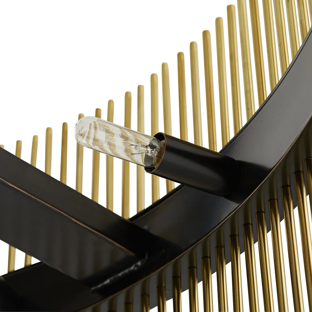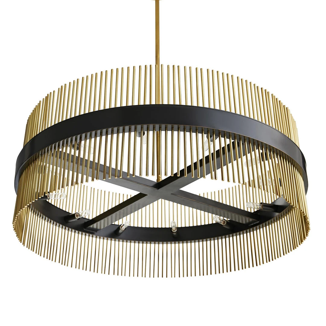 The Hozier Chandelier in Antique Brass from Arteriors Home is dramatic in sculptural form and beautifully handmade with hundreds of tubes of stainless steel. The main steel ring holds 12 candelabra bulbs and is finished in a warm antique brass finish. This brilliant hanging light casts linear shadows in every direction. Place the Hozier in the kitchen, guest suite or home office to create instant brilliance in your home.