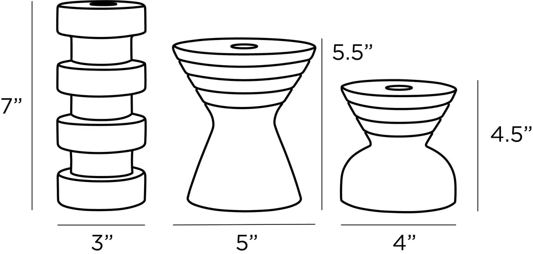 | Dimensions | Set of 3: Large: 7" High x 3" Diameter Medium: 5.5" High x 5" Diameter Small: 4.5" High x 4" Diameter |