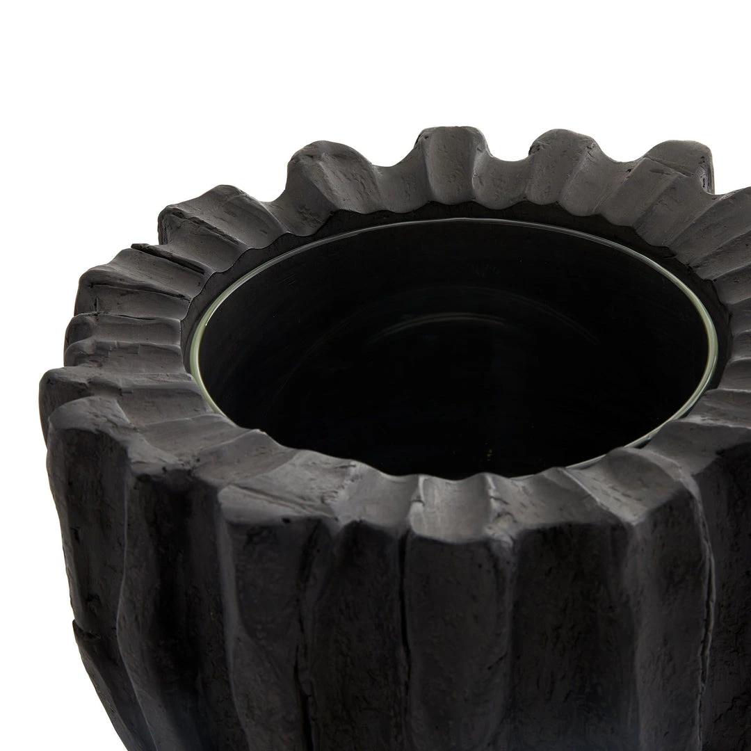 Crafted to replicate the bark of a redwood tree, the Mangrove Centerpiece from Arteriors Home is both rugged and dramatic. The ebony finish gives this piece a charred look, also adding to its bold style. A clear glass insert protects the inside and adds an elevated detail. *Finish will vary.