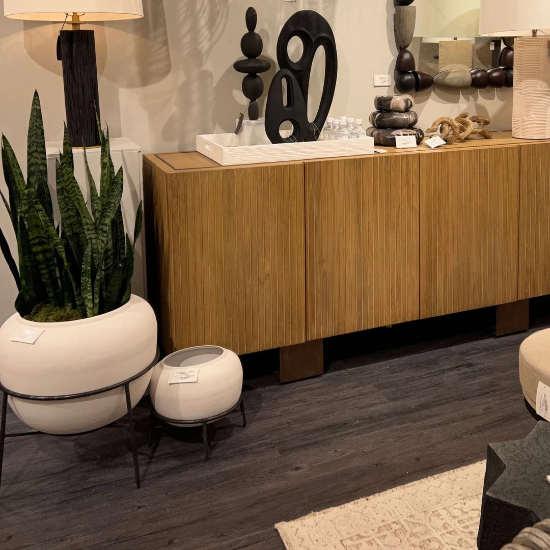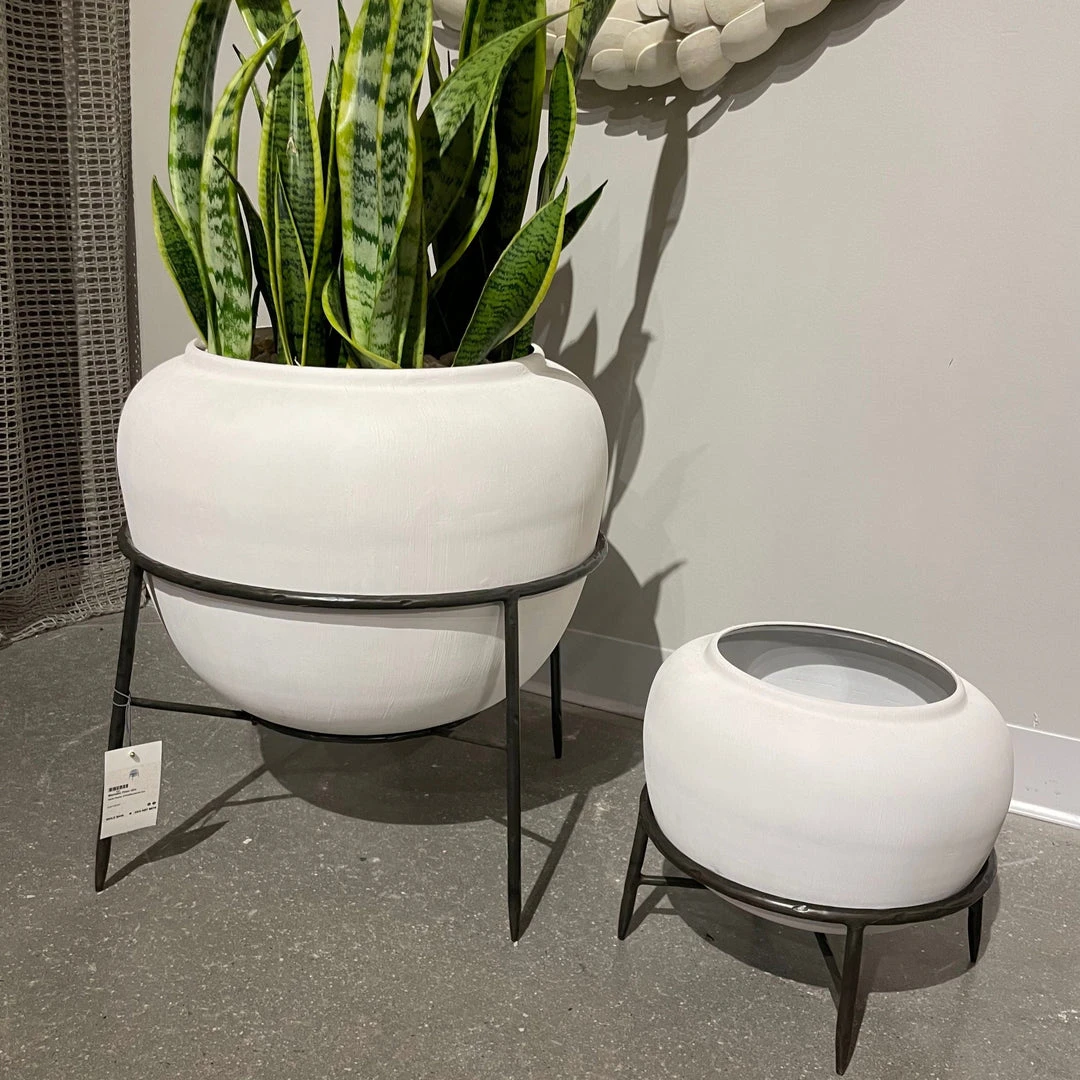 This pot gives any plant a visual and literal lift. The Marecello Large Floor Urn in Matte White from Arteriors Home rests on a blackened iron stand, and is finished in a matte plaster glaze that gives it an organic feel. When filling with soil, be sure to include a liner to protect the pot. Finish and iron will vary.