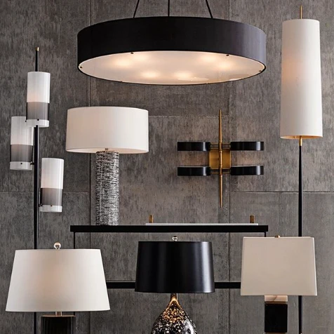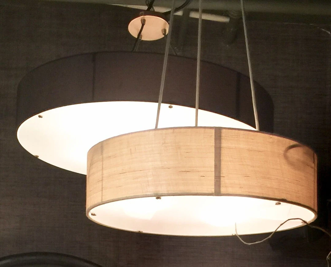 | Materials | Steel; Matte Black Finish; Brass; Antique Brass; Steel; Antique Brass; Requires Six 40watt A19 Incandescent Bulbs; Round Black Drum Microfiber Shade; Black Cloth Cord |