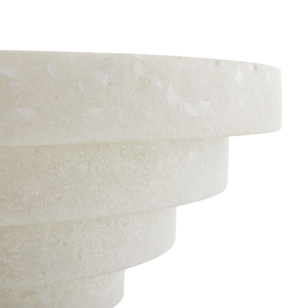 Stacked concentric layers of ivory ricestone form the unique Maximus Centerpiece from Arteriors Home. Taking design cues from the Bauhaus movement, the base is a round plate of bronzed steel, providing subtle support. *Ricestone will vary.