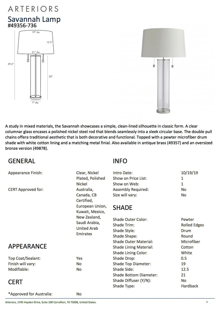 Be the first to review “Arteriors Home New Arrivals Savannah Lamp Polished Nickel” Cancel reply