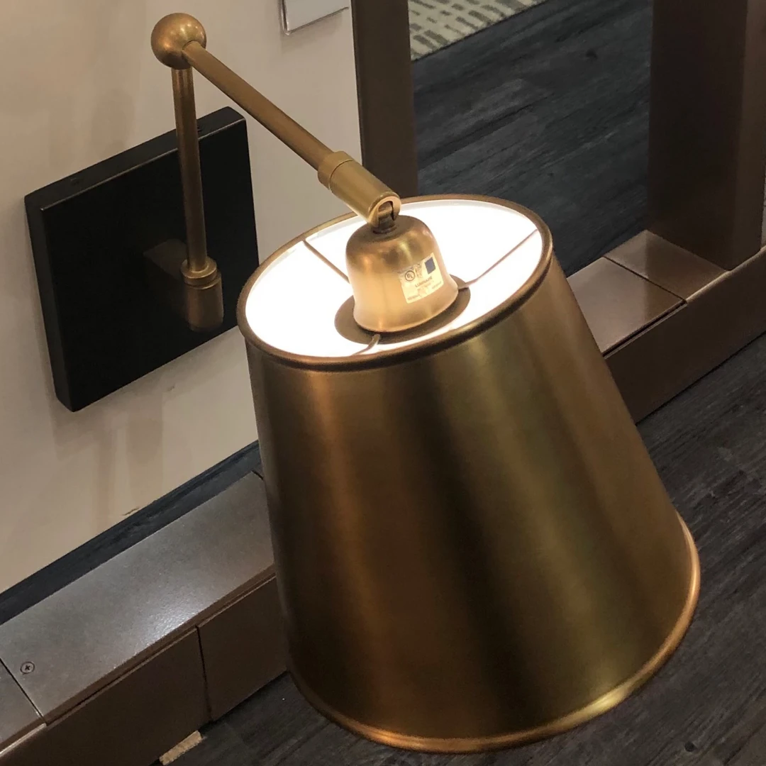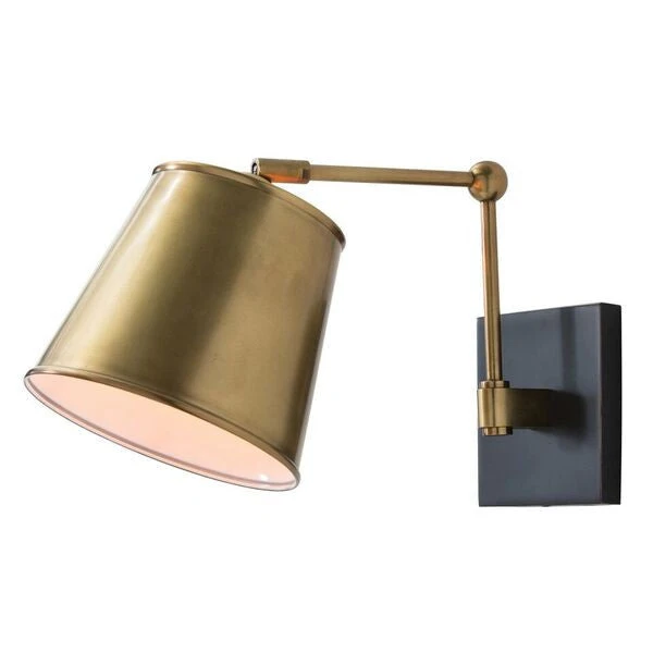 The Arteriors Home Watson Sconce is finished in antique brass with a bronze backplate. A modern sensibility defines this midcentury wall sconce lighting from Arteriors Home. The perfect scale of the Watson Sconce makes it ideal for spotlighting your favorite art piece! Wall sconce lighting like the Watson Sconce from Arteriors Home works beautifully next to a bed when space is tight and a nightstand won’t fit.
