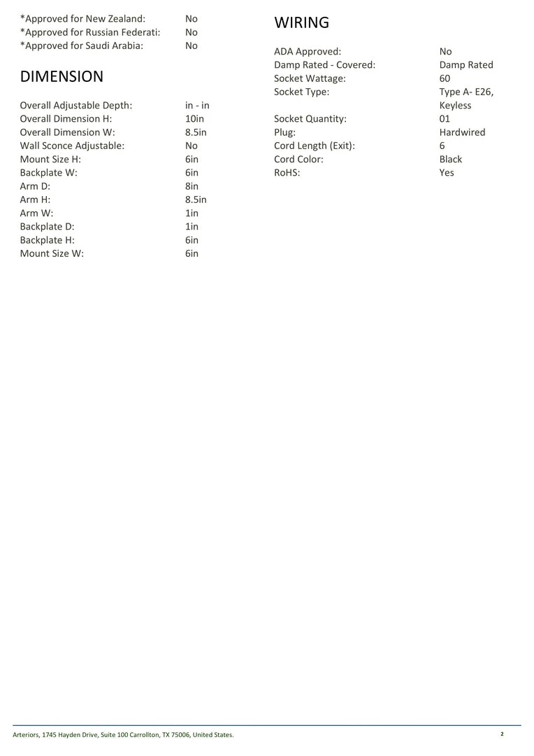 | Materials | Steel; Bronze Backplate Finish; Antique Brass Finish; Hardwired; Requires One 60watt Bulb |