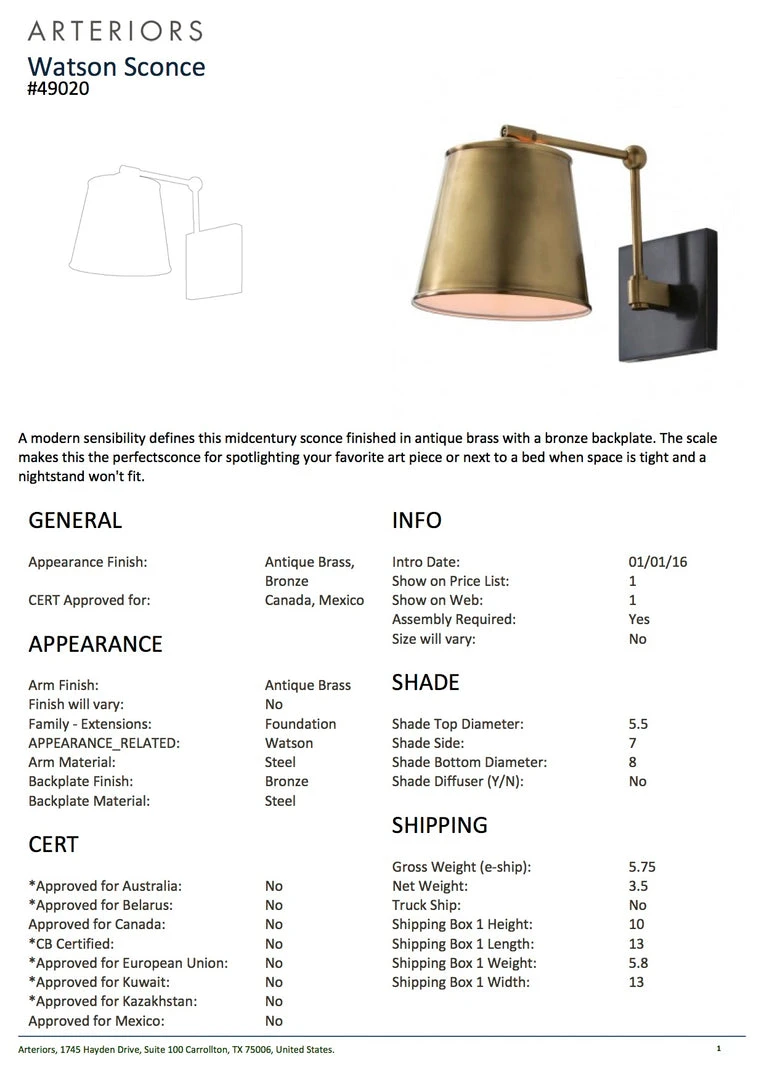 Be the first to review “Arteriors Home New Arrivals Watson Sconce Brass” Cancel reply