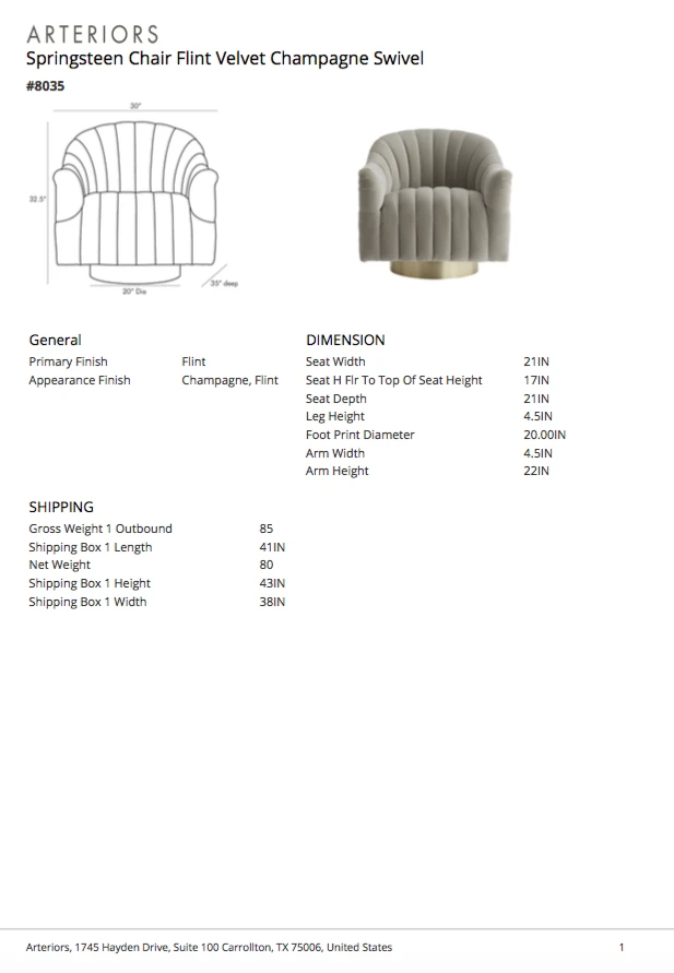 Be the first to review “Arteriors Home Springsteen Chair Flint Velvet Champagne Swivel New Arrivals” Cancel reply