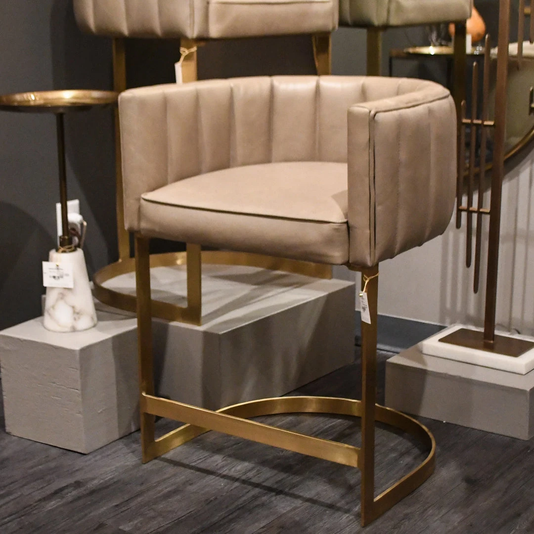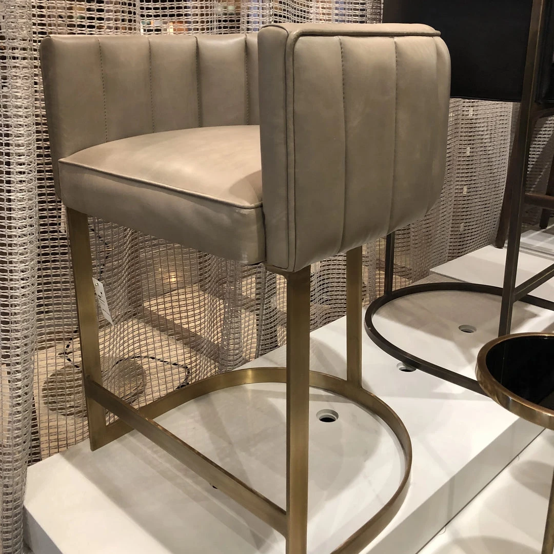 Drawing on the modernity of contemporary design, the Tatum Counter Stool from Arteriors Home features a timeless profile. The top grain mushroom leather called Morel paired with an antique brass base creates a comfortable and stylish design. Further modernized with a half circle shape, the luxury seat is versatile in the ways it can be used. The dropped back of this shapely neutral seat blends seamlessly into its arms, allowing it to easily slide under the counter to provide more room when not in use.