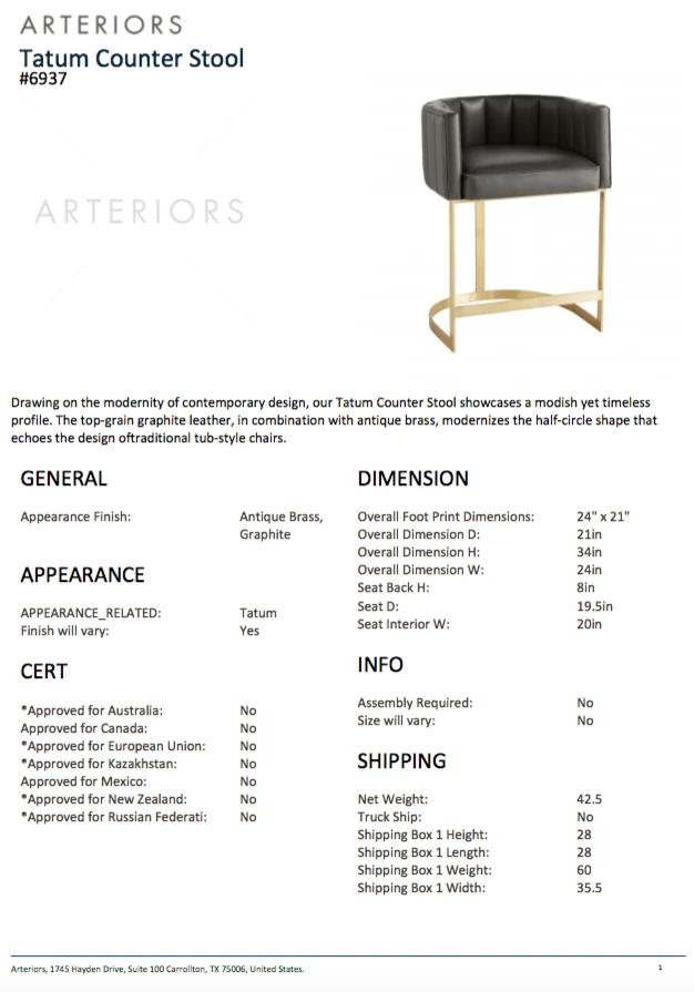 Be the first to review “Arteriors Home Tatum Counter Stool Morel” Cancel reply