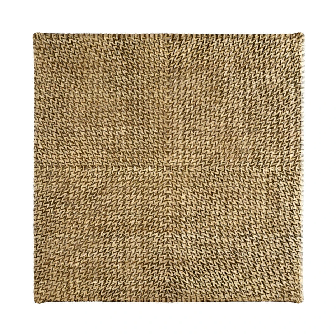 The large sprawling surface of the Underhill Cocktail Table presented by Arteriors Home features a handcrafted woven herringbone pattern that highlights precise rattan craftsmanship. Made entirely from natural materials, the Underhill from Arteriors home furnishings offers thick and sturdy rattan poles forming an x shaped base that supports the square frame of this stately piece. *Rattan may vary.