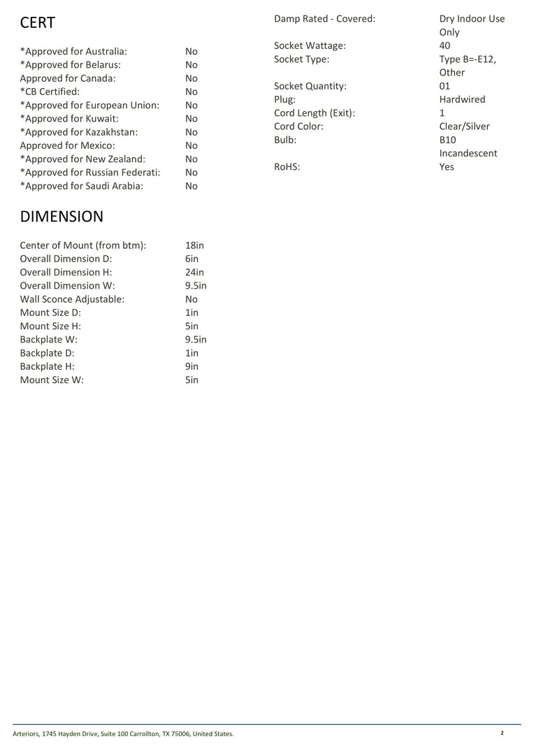 | Materials | Iron; Mirror; Antique Brass; 1 Light; 40 Watt; B10 Incandescent Bulb |