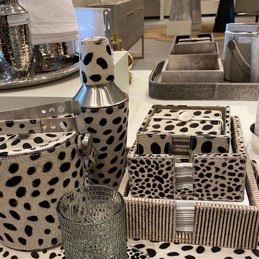 SKU: blue-pheasant-6668117671984 Categories: Barware, Barware, Blue Pheasant, Brands, Decor, Kitchen, Kitchen & Dining, New, New Arrivals, Tabletop Tags: Aug2021, Blue pheasant, Coaster set, Dalmation print, Entertain, Gift, Hair on hide, Harper