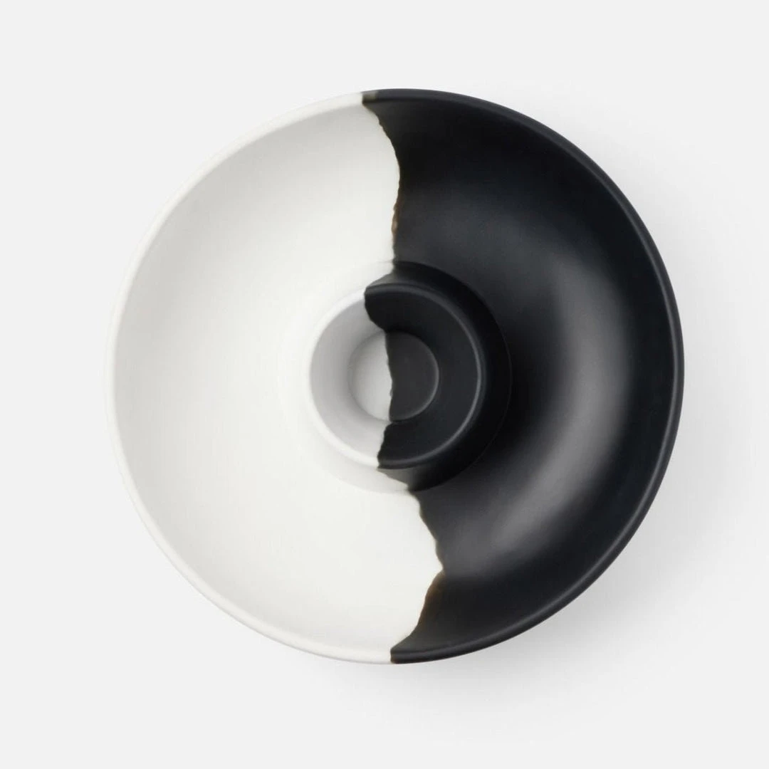 The ultimate neutral canvas to showcase any dishes, the Maxton Chip and Dip Bowl from Blue Pheasant features a stark black and white contrast and smooth finish. Hand wash only, not microwave safe, not dishwasher safe, not oven safe, and not freezer safe. Variation to be expected.