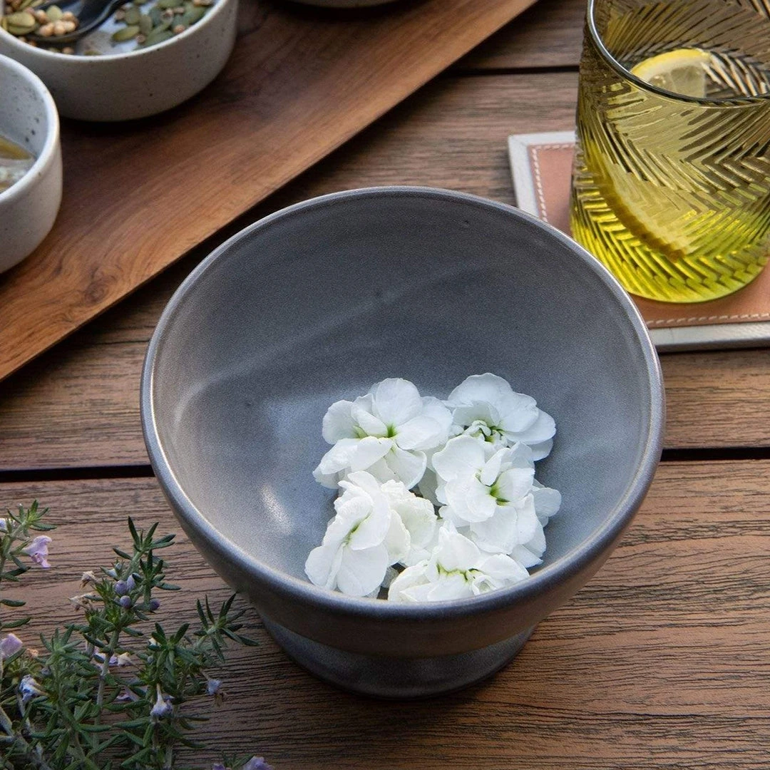 The Wilson Large Cement Glaze Footed Serving Bowl Set from Blue Pheasant adds a playful, architectural element to your table. The modern hue of the glazed stoneware makes this set beautiful, modern, and functional. Perfect given as a gift or to adorn your own tabletops.