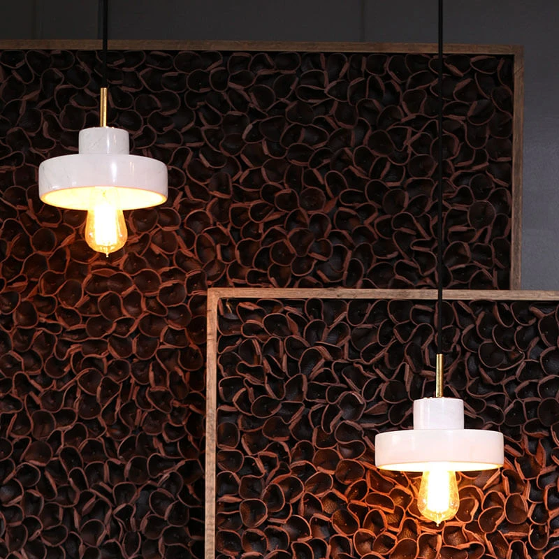 Bobo Intriguing Objects showcases the Wren Pendant, offering a modern minimalist approach to pendant lighting. The Wren design features an exposed bulb topped with a sleek white marble shade. Clean and simple, the Wren is ideally placed in multiples in kitchens, entryways or dining rooms. Shown here with an Edison Bulb. *Bulb not included.