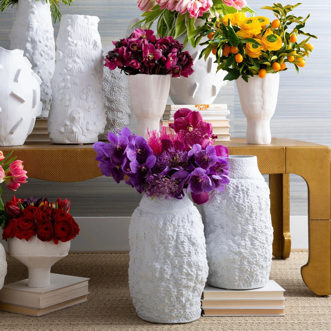 The Anito Vase from Bungalow 5 is one of several new vases that takes its inspiration from forms encountered in the natural world. Borrowing from coral reefs to forests, to natural rock outcroppings, our artisans have created vases in white matte porcelain that celebrate the beauty and the asymmetry forms encountered in both land and sea. Stunning in their originality, these pieces serve either as decorative objects, for example, gracing center table or a dining table, or as vases holding floral arrangements.