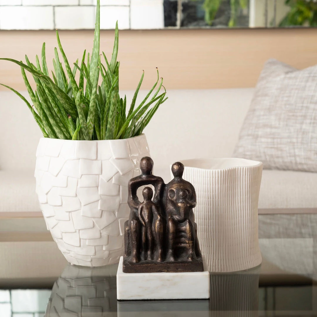The Apsis Bowl from Bungalow 5 features traditional porcelain deconstructed Blanc de Chine porcelain formed into delicate hand-made tiles. The result is a stunning and unusual contemporary bowl that is sculptural and unique. It is equally suited as a decorative piece of art on an etagere, a striking centerpiece filled with fruit or flowers, or a potted plant. With a glossy finish, the uses are innumerable.
