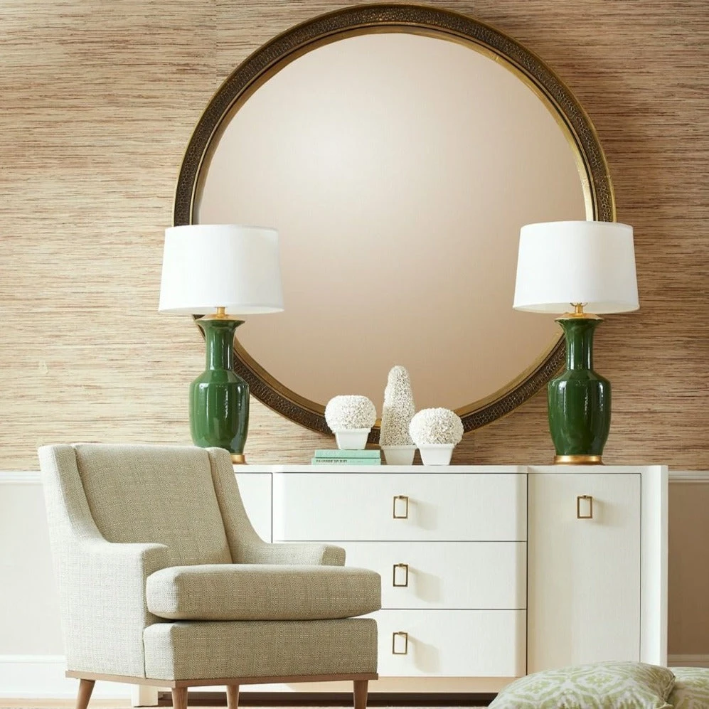 | Materials | Washed Lacquered Linen; Veneer Drawer Interior With European Hinges; Full Extension Glides; 2 Adjustable Shelves; Brass Hardware; Back Features Holes For Cable Access |