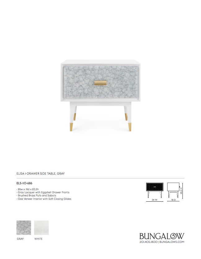 Bungalow 5 Elisa One Drawer Side Table Gray New Arrivals