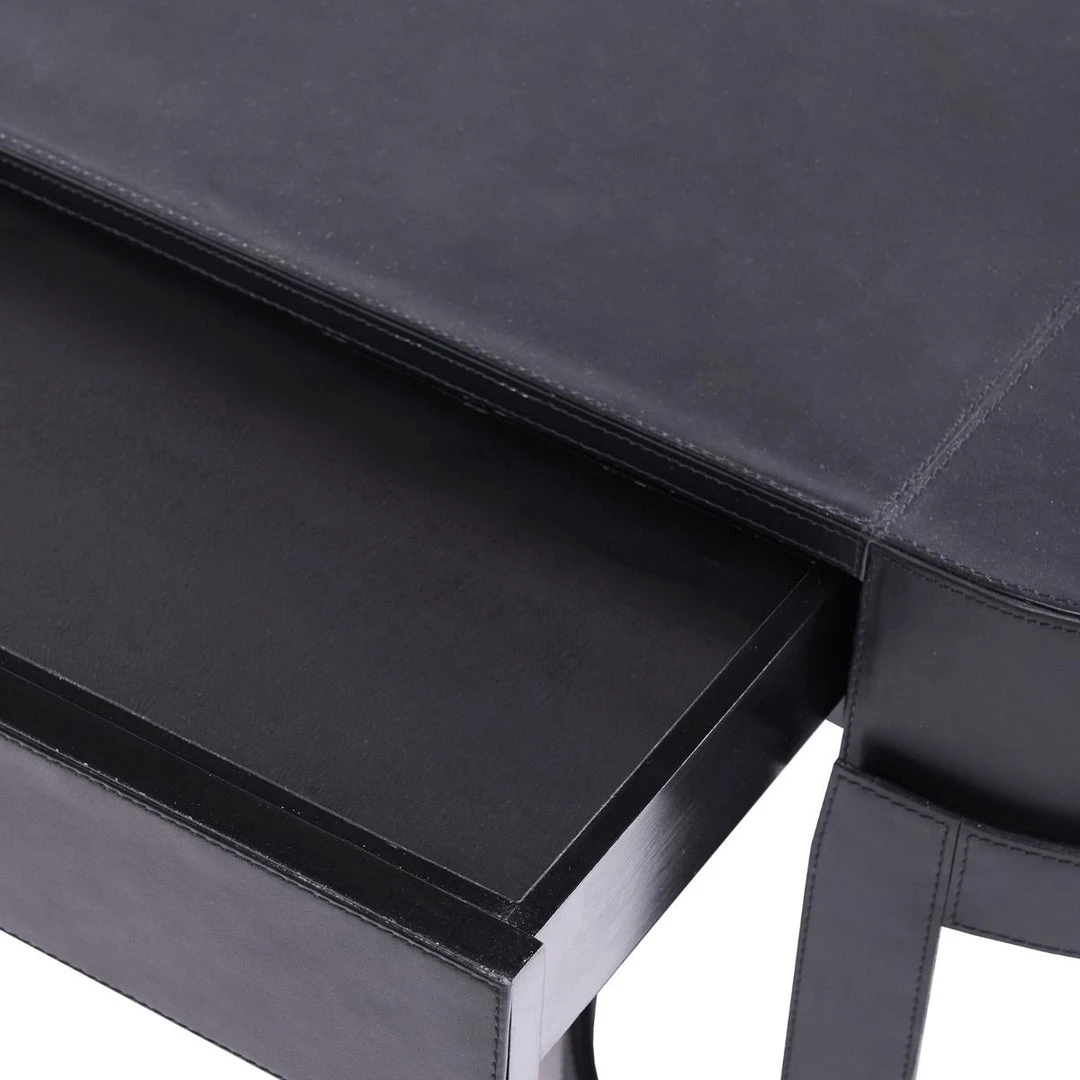 The sumptuous curves of the Logan Coffee Table in Black from Bungalow 5 are fully wrapped in striking black leather all the way down the legs and frame. The hidden drawer—perfect for tucking away your unsightly remotes and other necessities—is lined with micro-suede and features full extension glides for ultimate luxury. The intricacies of this piece’s finish juxtaposed with the matte leather are the perfect combination of what we love: classic pieces with modern twists.
