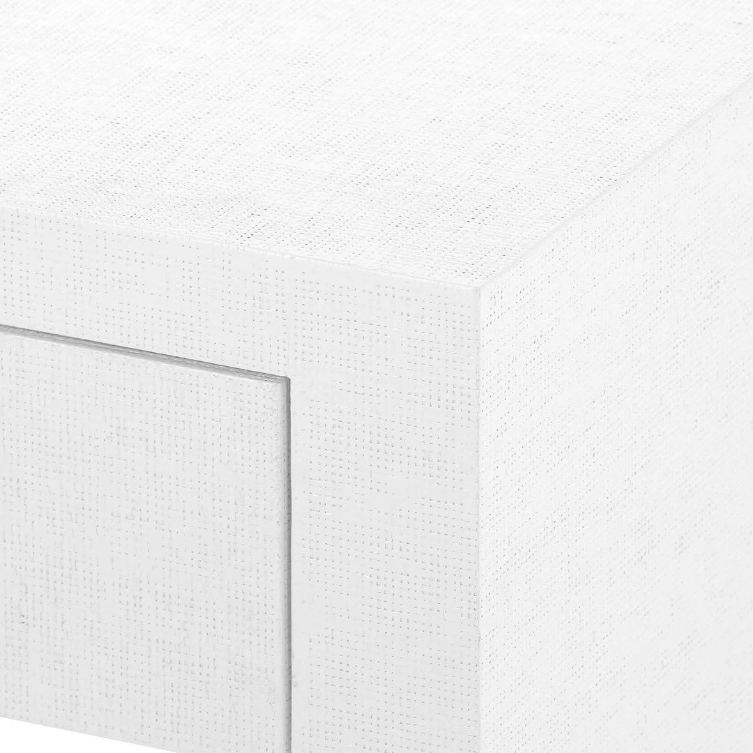 The Morgan 1 Drawer Side Table in White from Bungalow 5 offers a modern interpretation of simple shapes and refined proportion with an elegant lacquered grasscloth. The Morgan features resolved architecture and textural interest with versatile display options that are both monumental and demure. Place the Morgan in bedrooms as well as living spaces and home offices.