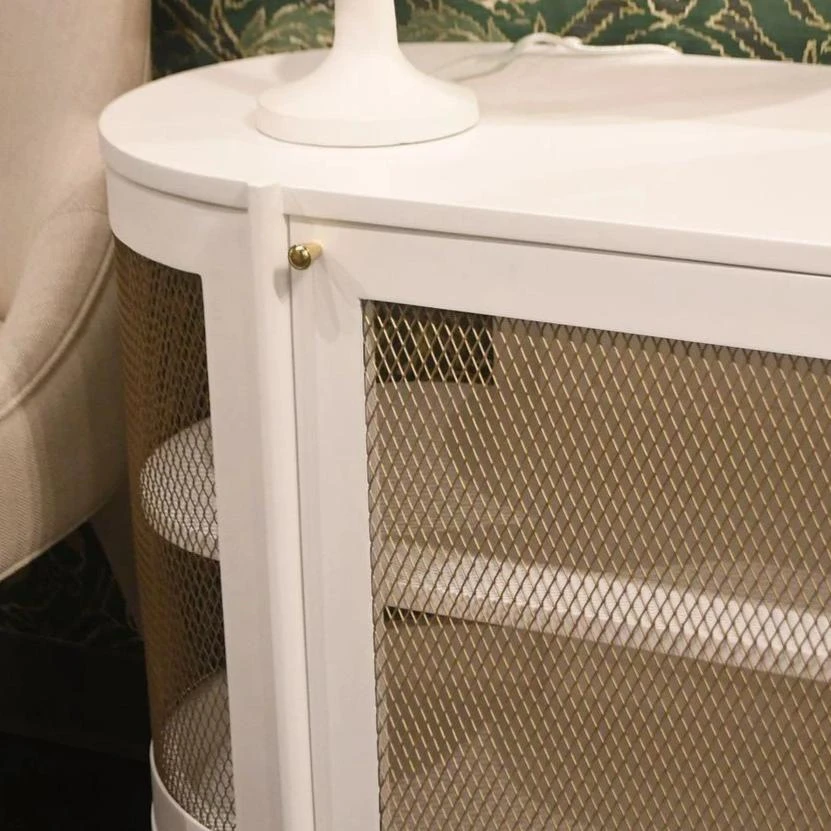 The Nadia 2 Door Cabinet in White from Bungalow 5 integrates storage and display space in a chic showpiece. Inspired by French design, the elegant gold metal mesh on the doors and its rounded sides imparta a lightness while giving it a unique silhouette. We love this buffet cabinet for all of its unique details. Place the Nadia in the dining room or living room for maximum storage.
