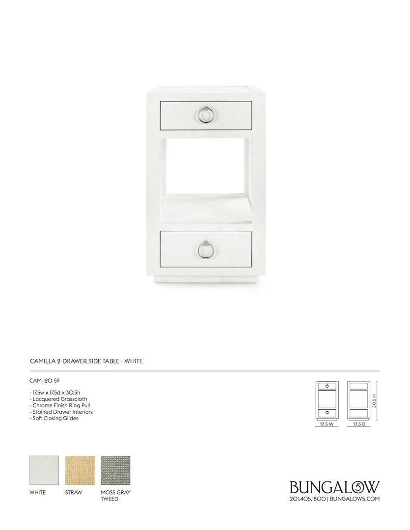 Bungalow 5 New Arrivals Camilla 2 Drawer Side Table White