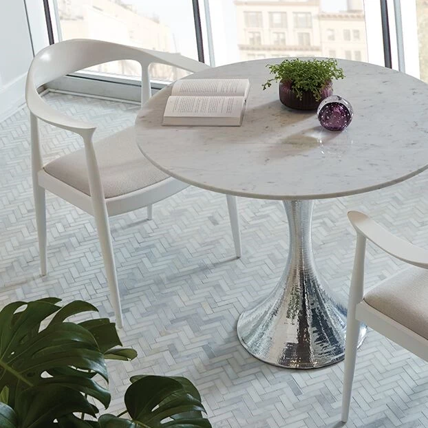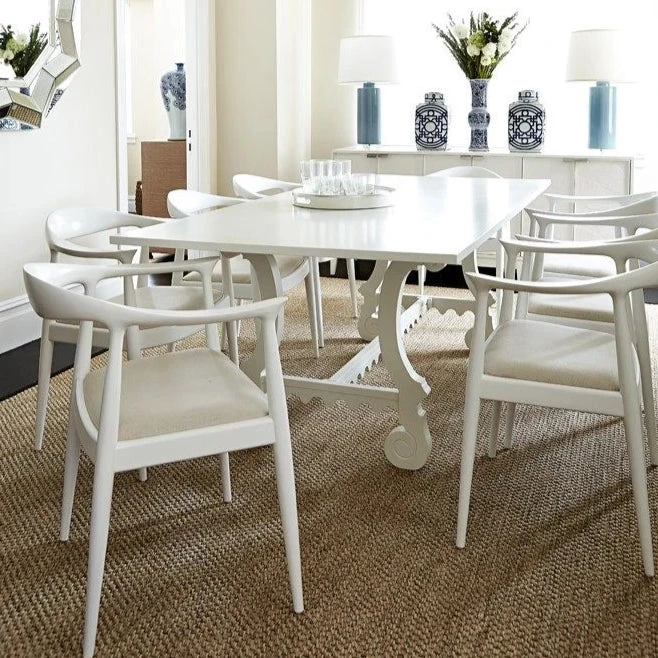 The Danish Armchair from Bungalow 5 features all the simplicity of 20th century design. The functionality of the simple white lacquered mahogany frame works nicely with its linen drop-in cushion in a natural tone (color varies). Pair these up in the kitchen or surround your dining room table with the Danish Armchairs for a clean modern feel.