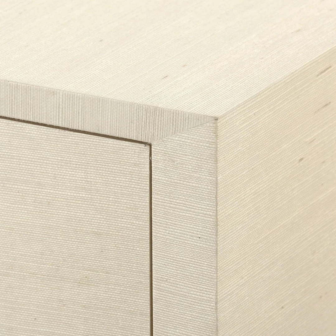 | Materials | Lacquered Grasscloth; Stained Interior With European Hinges; 4 Adjustable Shelves; Gold Finish Ring Pull; Chow Feet; Back Features Holes for Cable Access |