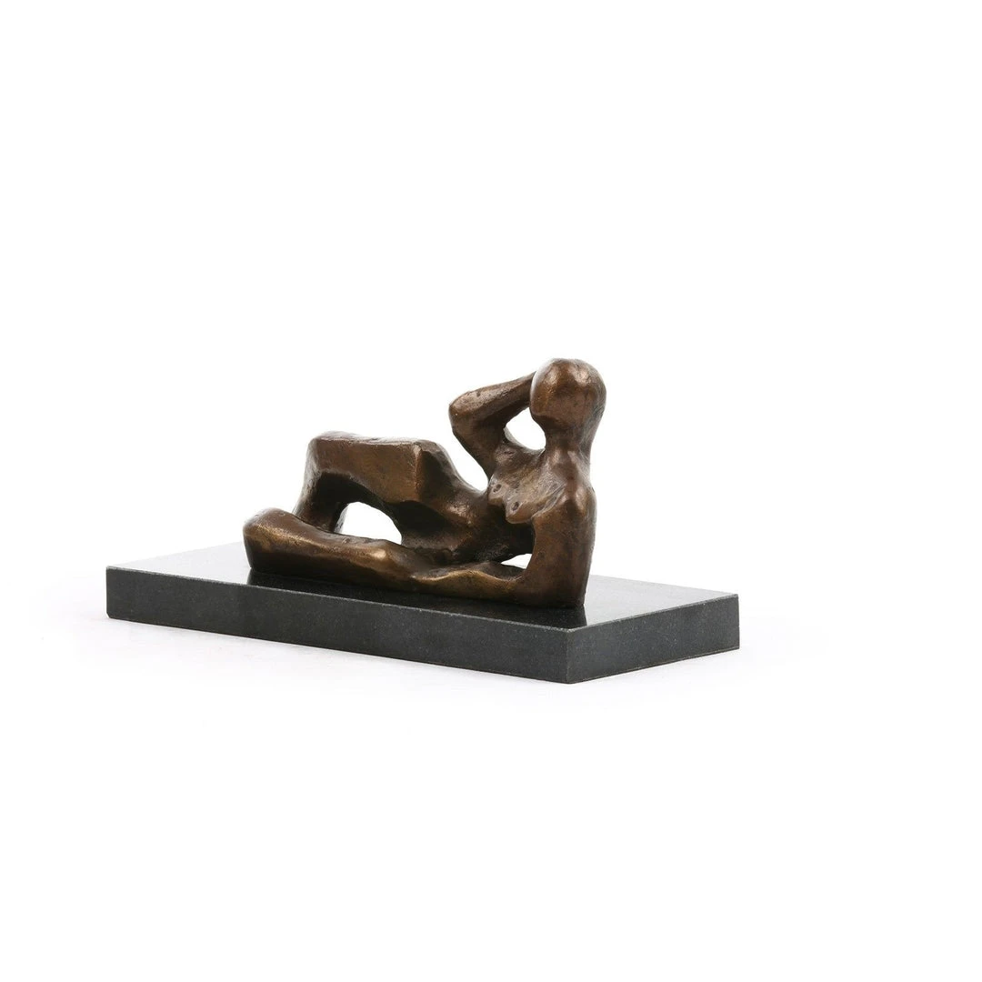 The Misia Statue in Bronze from Bungalow 5Â is a reclining female figure in the recognizable post-war British style. Here, the human figure fuses with organic forms such as shells, pebbles, and bones. In an effort to move beyond war, these artists gravitated to pre-cultural and pre-rational inspirations. Particularly, they admired the monumentality and humanism of Toltec-Mayan sculpture. Our statue has distinctive voids together with the marks and texturing you might expect to see in a maquette for a larger work.