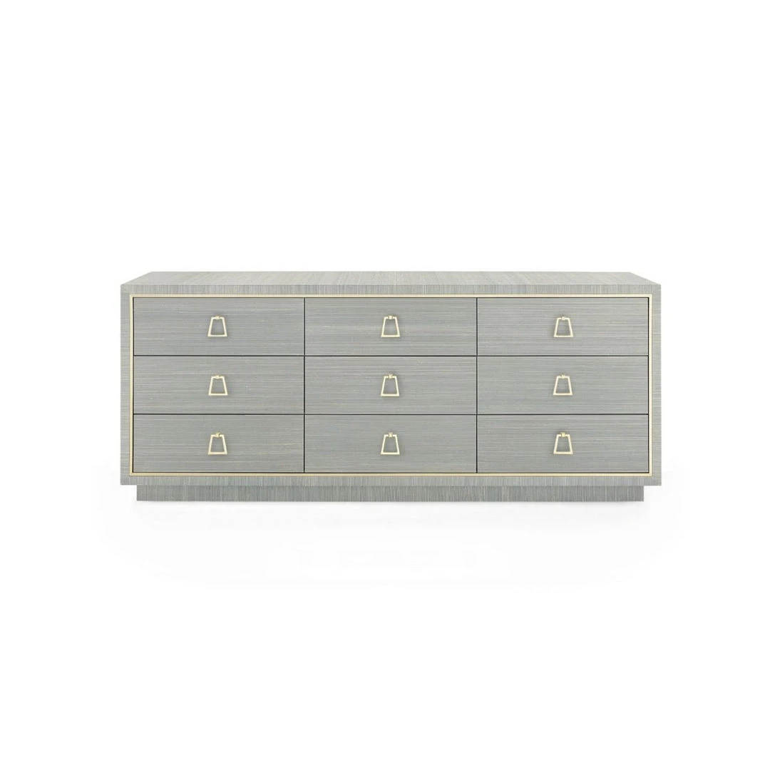 Bungalow 5 New Arrivals Parker Extra Large 9 Drawer Chest Slate Blue Lacquered Grasscloth