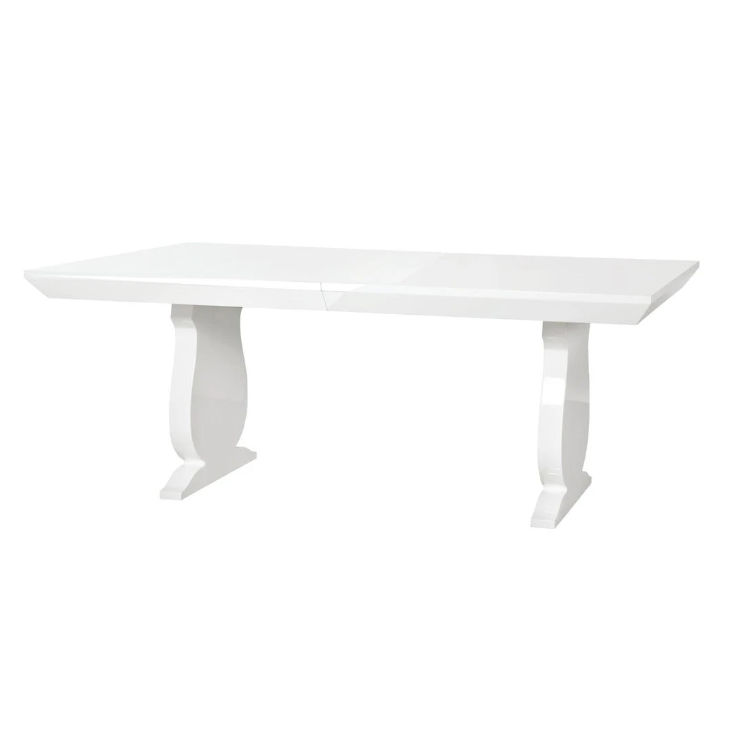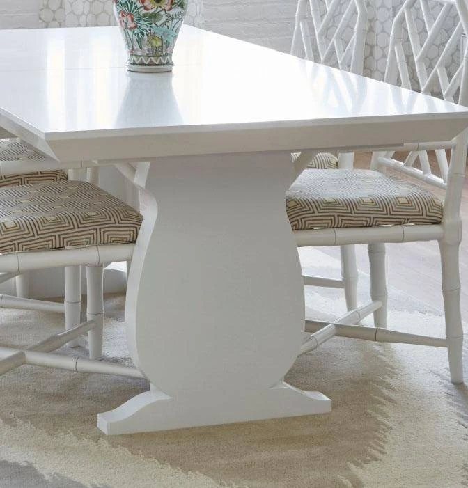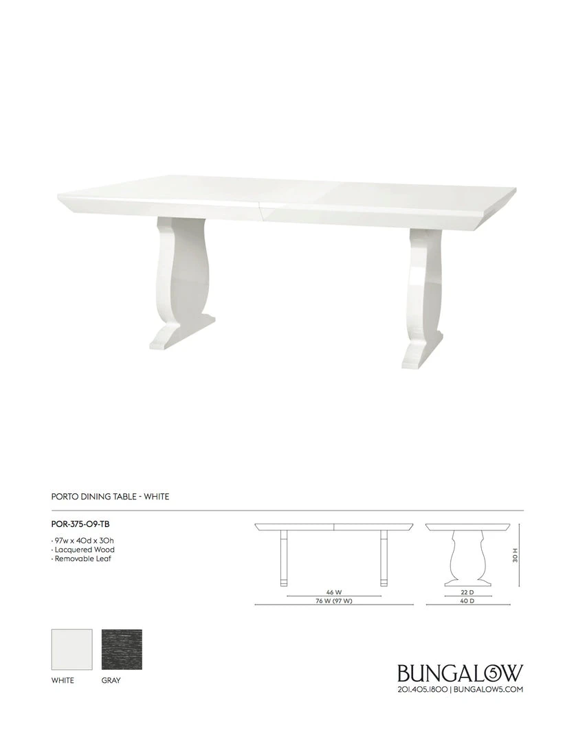 The Porto Dining Table in White from Bungalow 5 delivers a dramatic style to your dining room. The romantically curved, baluster shaped base harmonizes with the beauty of the sleek lacquered wood finish. Rectangular in shape, the Porto is the ideal table to update your dining room with a contemporary flair. *Extension leaf is included.