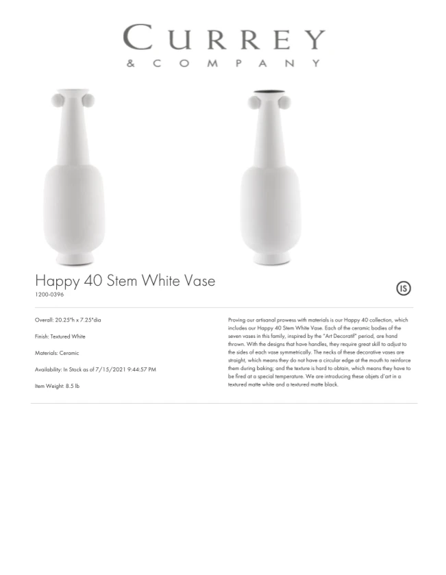 Currey And Company Happy 40 Stem White Vase